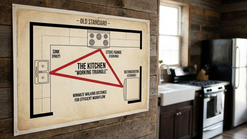 In a 1940s kitchen, the triangle worked perfectly. It optimized steps for a single person moving between the icebox, the sink, and the oven. But ask yourself: Does that sound like your kitchen today?